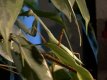 10. August: ein Männchen, kurz nach der Imaginalhäutung. Es ist jetzt adult oder eine "Imago". Es hat 2 schöne Flügelpaare und misst stattliche 8cm. Leider kein gutes Bild, ich wollte ihn nach der Anstrengung aber nicht stressen. Nach ihm vollzogen auch das Weibchen und ein anderes Männchen ihre Imaginalhäutungen, so daß ich nun über eine richtige Zuchtgruppe verfüge. |