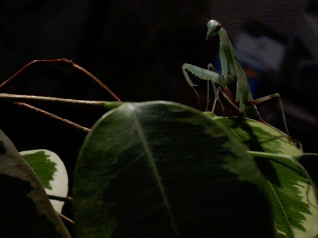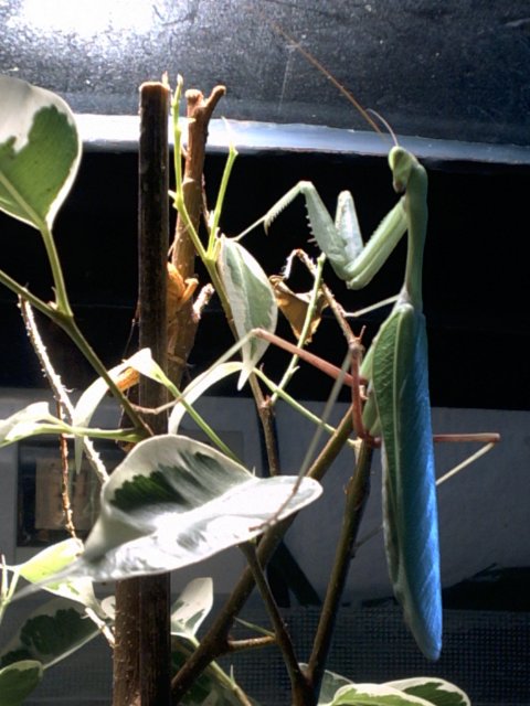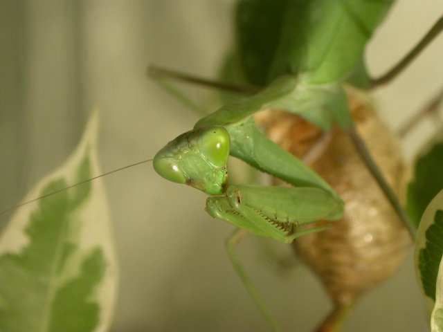 04. Dezember: Langsam ist sie eine richtig alte Mantiden-Dame. Man sieht deutlich Verfärbungen am Kopf = Alterserscheinungen. |